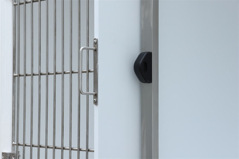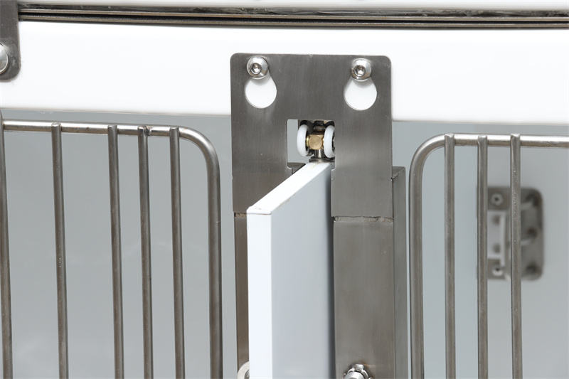 Унапред инсталиране млазнице и црева за прскање, систем за одводњавање са филтером и утичнице за напајање претварају га из пуког кавеза у мултифункционалну радну станицу. Електрична опрема као што су апарати за анестезију, концентратори кисеоника и јастучићи за грејање могу се укључити у утичнице и окачити на централну пречку врата. Ветеринарски водоотпорни модуларни кавез за псе од стаклопластике, предња врата дозвољавају постављање сунцобрана преко кривина у облику слова У, блокирајући сунчеву светлост док служе као баријера од ветра.